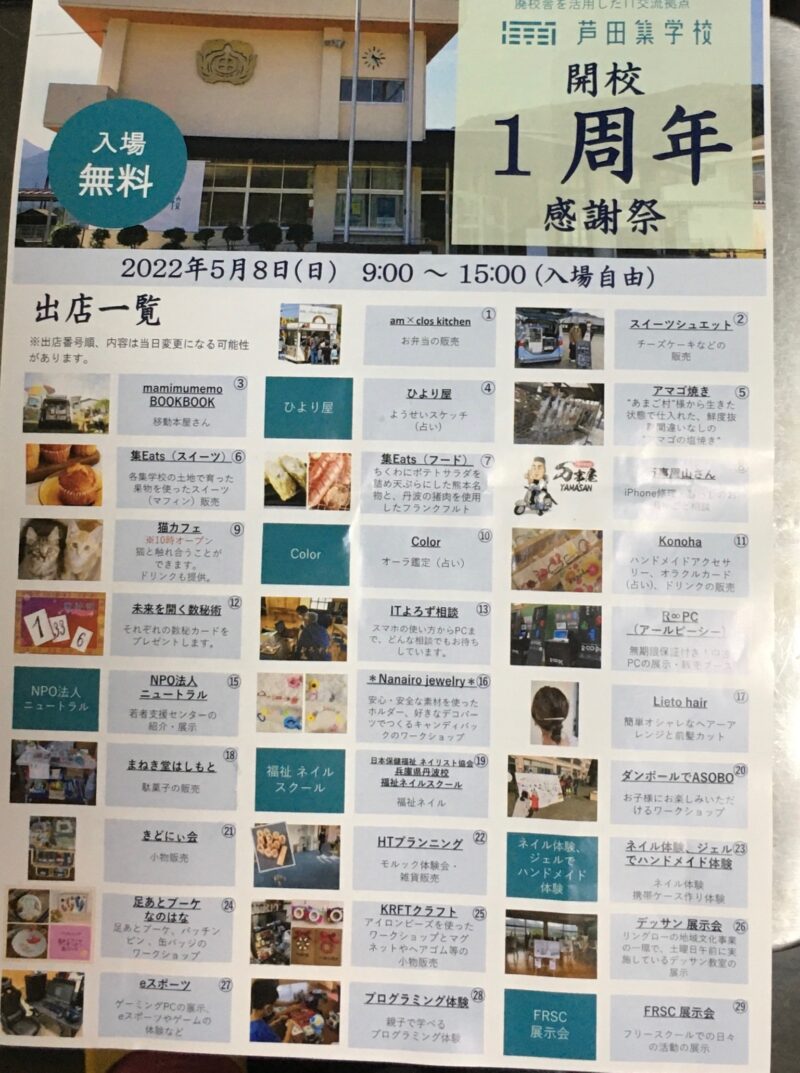 旧・芦田小学校が廃校になり、その建物を利用して色んなイベントをされています。