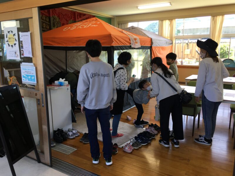 教室の中に、専用テントを設営させて頂きました。