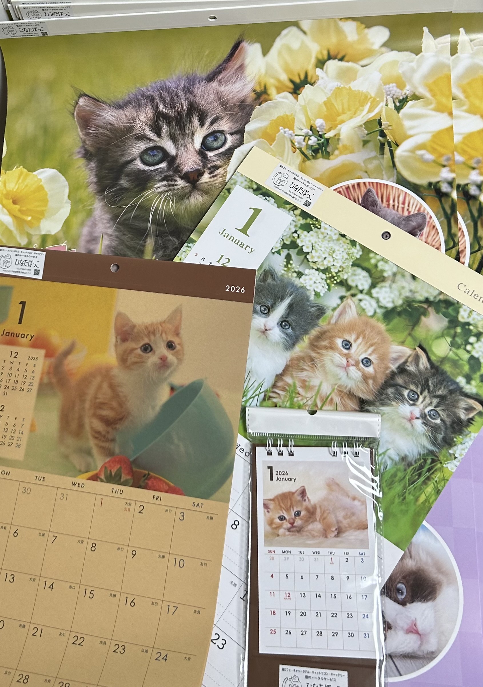 猫カレンダー2026 プレゼント 猫カフェ日誌 X Facebook はてブ Pocket LINE コピー 2025.09.14 いつもご来店いただき、ありがとうございます。今年も、カレンダープレゼントが始まります。9月15日~10月15日の期間です。4種類ございますので、ご精算の時にご希望をお伝えください。 皆様のご来店をお待ちしております。