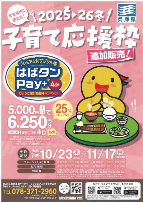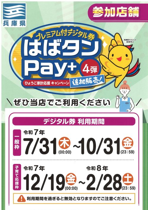 兵庫県で開催されております「はばタンpay」ですが、使用期限が今月末までです。